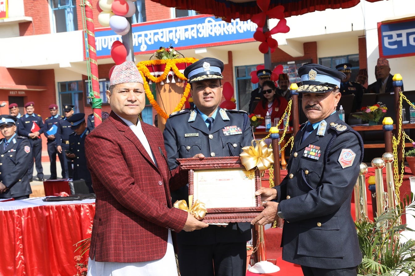 साथै उहाँले प्रतिष्ठानलाई सहयोग गर्ने केल्मी नेपालका प्रबन्ध निर्देशक उत्तम न्यौपानेलाई प्रशंसापत्र प्रदान गर्नुका साथै रस्साकस्सी खेलका विजेतालाई पुरस्कार समेत प्रदान गर्नुभयो । उहाँले राष्ट्रिय प्रहरी प्रशिक्षण प्रतिष्ठान महाराजगंजद्वारा प्रकाशित ‘प्रेरणा-२०८०’ को लोकार्पण समेत गर्नुभयो ।